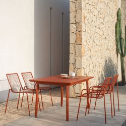 La table Plus4 est en acier peint par poudrage, en différentes couleurs. Ce matériau est extrêmement durable, résistant aux agents atmosphériques et aux rayons UV.