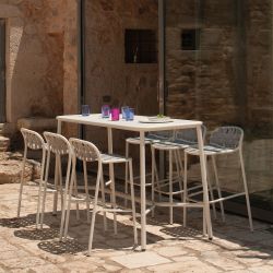 Parfaite pour l'équipement extérieur des jarinds, bars et restaurants, cette table haute complètement réalisée en aluminium verni est proposée en différentes.