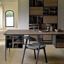 Le bureau Ethnicraft, modèle Oscar, est un compromis valable pour ceux qui souhaitent meubler un bureau ou un bureau avec style, sans sacrifier la capacité. Ses deux tiroirs, en effet, en plus d'être très spacieux, se caractérisent par avoir été sculptés à la main par des artisans.