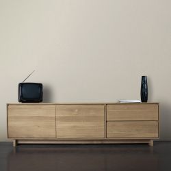 Wave-TV est entièrement réalisé en bois de chêne massif. Il est composé de différents espaces de rangement pratiques où y ranger les CD, DVD, livres ou tous les petits objets de la maison. Tandis que le dessus du meuble, conçu pour supporter la TV et le système Hi Fi, peut également être valorisé et personnalisé en y posant des objets déco tels que des photographies, des lampes ou des vases de plantes et fleurs.