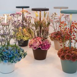 La célèbre lampe Poldina de Zafferano se présente désormais dans un nouveau modèle "à l'envers". Dans cette version, la lampe est équipée d'un récipient polyvalent dans la partie inférieure, où de petites plantes, fleurs ou objets peuvent être placés. Le récipient intérieur est en plastique PET, adapté au contact alimentaire ; il est facilement démontable et réutilisable.
