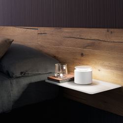 Il a un design minimaliste, caractérisé par des formes géométriques pures. Cette lampe Zafferano surprend par sa simplicité : elle s'allume en appuyant sur le dessus et s'emporte partout, car elle est rechargeable et sans fil.