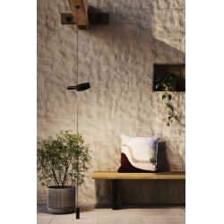 Dans cette version, la lampe comporte un câble en acier qui est fixé au plafond et descend jusqu'au sol, où est positionnée la base de la lampe. Les points lumineux, de un à trois au maximum, peuvent être positionnés et orientés à volonté. Chaque source lumineuse peut être allumée et régulée indépendamment, en choisissant l'intensité et la température de la lumière.