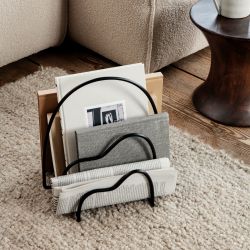Le porte-revues Lithos a une forme qui rappelle les paysages montagneux ; Il dispose de cinq séparateurs, le plus haut faisant office de poignée pratique.