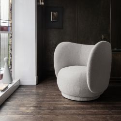 La série de fauteuils Rico de Ferm Living joue avec les formes et les volumes, créant une assise accueillante et enveloppante. Les lignes courbes et douces sont capables d'allier confort et élégance.
