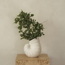 Shell Vase, grâce à ses tons neutres et sa forme qui rappelle une coquille, se marie parfaitement avec un mobilier contemporain et traditionnel.