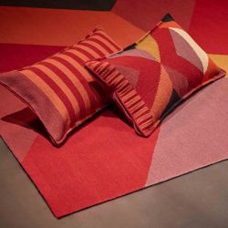 Fabriqué en 100 % laine, ce coussin présente des motifs géométriques colorés. Son garnissage intérieur est en polyester recyclé.