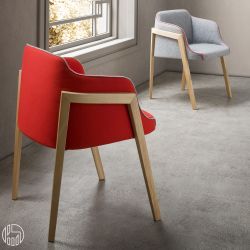 Petit fauteuil doté de structure en bois d'hêtre teinté naturel. L'assise est rembourrée en polyuréthane Pu-Flex pour garantir le maximum de confort.