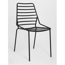 Chaise moderne en métal, idéal à l'extérieur. Le jeu d'intersections de la structure sert aussi d'élément esthétique primaire.