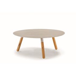 Table basse en métal et teck, plateau rond, modèle Bahamas.