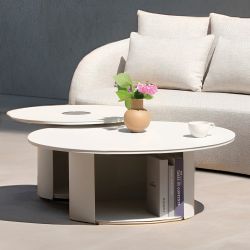 La table basse ronde Cosy, en aluminium peint en blanc , se distingue par son design essentiel et contemporain.