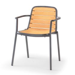 Chaise d'extérieur en métal et teck, modèle Nida.