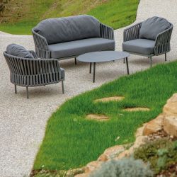 - structure en aluminium couleur titane , corde et coussin assortis - combinés avec une table basse anthracite ;