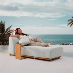 Rule est une chaise longue rembourrée, au design raffiné et confortable, idéale pour embellir le jardin ou l'espace extérieur des hôtels et des clubs.