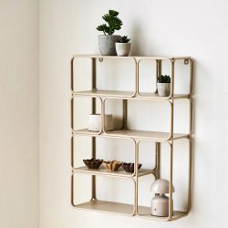 Elle se distingue par la composition de ses compartiments, disposés en quinconce, évoquant le jeu Tetris et créant un effet dynamique et original sur le mur.