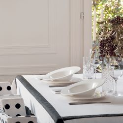 Unique en son genre, cette collection d'assiettes est caractérisée par l'empreinte à relief sur le bord de l'assiette qui reflète la vision particulière de la cuisine du fameux Chef Oldani, canalisée sur le geste de servir.