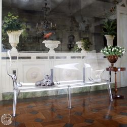 Uncle Jack, canapé biplace made in Italy, est présenté en polycarbonate transparent.