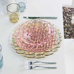 Brillantes et transparentes, les assiettes Jellies Family, disponibles en bleu clair, rose, vert ou en version complètement transparente donnent de l'élégance et du style à la table