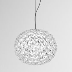 La suspension Planet se caractérise par son abat-jour brillant et aux multiples facettes qui diffuse d'agréables reflets dans la pièce. La forme de la lampe est sphérique, légèrement aplatie au niveau des pôles. Son design s'adapte facilement à différents contextes d'ameublement, tant à la maison que dans les espaces publics.