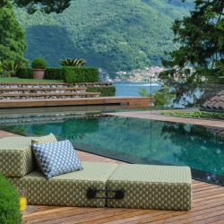 Composé de trois éléments reliés entre eux par un élégant système d'élastiques qui permettent, par un mouvement de rotation, au Trix de s'adapter à différents usages : d'un pouf pour deux personnes à une chaise longue ou un lit confortable.