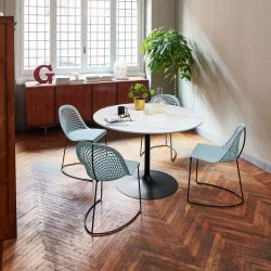 Le socle central est en métal tourné et est disponible en plusieurs couleurs.