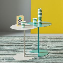 Cette table basse moderne est entièrement réalisée en métal laqué dans une large gamme de couleurs.