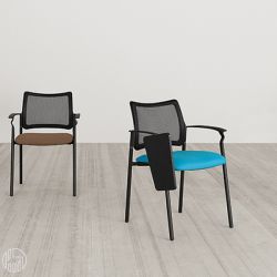 La chaise est dotée d'un dossier en maille de polyester respirant , disponible en différentes couleurs. Le siège est rembourré et tapissé.