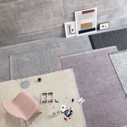 Ply est un tapis design composé à 100 % de laine de Nouvelle-Zélande, tissé à la main avec un tissage à chevrons.