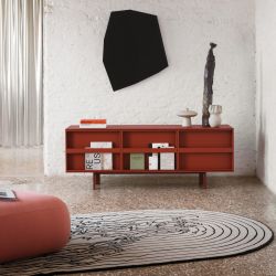 Doté d'une base et d'un cadre laqués, de portes assorties au cadre ou laquées dans d'autres couleurs. Également disponible en finition placage bois. Équipé d'une étagère intérieure en verre.