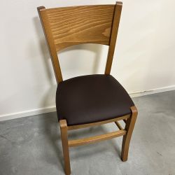 Réalisé avec une structure en bois teinté miel, tandis que l'assise est rembourrée et recouverte de simili cuir Silvia Beige (22).