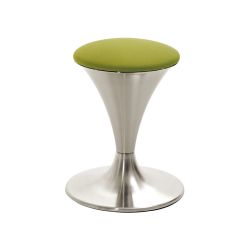 La forme de la colonne centrale à cône renversé appliqué sur une base ample confère à ce tabouret sa ligne sinueuse et éffilée. Sa base et sa structure lui donnent stabilité, tandis que son assise circulaire rembourrée lui apporte le maximum confort.