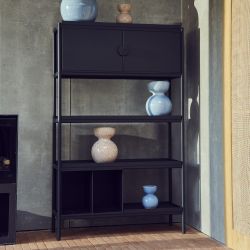 Le meuble de rangement Toss Cabinet de Polspotten est une étagère métallique modulaire, disponible en noir et conçue pour une adaptabilité maximale.