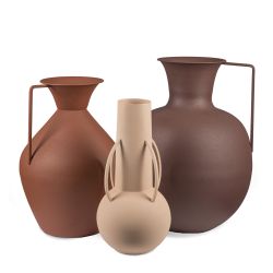 Vase Roman est un ensemble design composé de 3 vases , présentés ici dans des tons de marron : rouille foncé, rouille orange et beige.