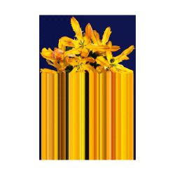 Un tapis raffiné et moderne à la fois : il met en scène un bouquet de fleurs qui semble tendu vers le haut pour laisser derrière lui un sillage coloré.