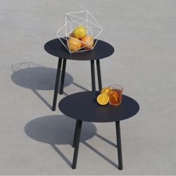 Ces tables peuvent être utilisées individuellement ou placées côte à côte, créant un jeu de hauteurs.