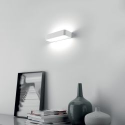 Cette applique se compose d'un cadre en aluminium qui diffuse la lumière aussi bien vers le haut que vers le bas. La lampe convient aux contextes d'ameublement les plus variés, étant également disponible en quatre tailles de longueurs différentes. Les modèles plus petits conviennent aux zones de passage, à l'entrée ou à la zone au-dessus de la table de chevet ; les plus grandes tailles s'intègrent bien à la fois dans la salle de bain et dans le salon.