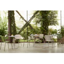 Cette chaise moderne, rendue encore plus confortable par les accoudoirs, a des pieds en tube d'acier Ø20 mm galvanisé et peint dans une large gamme de couleurs.