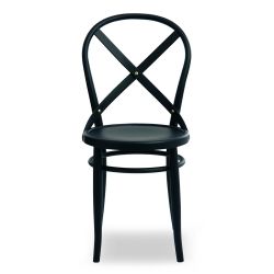 Entièrement en bois naturel, teinté ou laqué. Le dos vide est défini par un x qui soutient le dos.