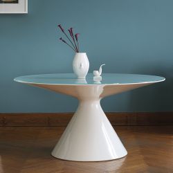 Le plateau est au contraire, dans toutes les versions, en verre trempé dépoli et a un diamètre de 140 cm.