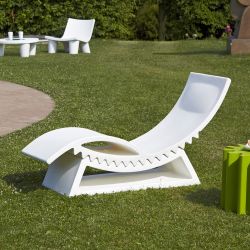 Un jeu de courbes et lignes géométriques constitue le trait distinctif de Tic Tac, une chaise longue originale et polyvalente, idéale pour equiper les jardins et les terrasses.