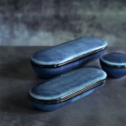 Avec son émail bleu et sa forme ovale , ce plateau à couvercle transforme même les gestes les plus simples en moments de style.