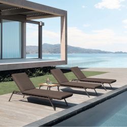 Chaise longue design, idéale pour les jardins, les terrasses ou les piscines.