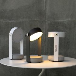 La base ronde a un diamètre de 11 cm, tandis que la hauteur de la lampe est de 19 cm. Le diffuseur à LED (2800-3000K) tourne pour vous permettre de diriger la lumière vers le point souhaité. Tofee a une batterie rechargeable.