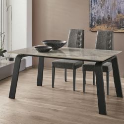Sur demande, le plateau peut être commandé dans d'autres finitions, telles que le grès mat, le verre, le verre à motifs et d'autres couleurs de stratifié. De plus, la structure peut également être commandée en noir.