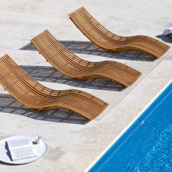 Swing L est parfait pour décorer l'espace détente du jardin ou au bord de la piscine. Le bois naturel et les lattes galbées confèrent à cette chaise longue un aspect confortable en harmonie avec l'environnement.