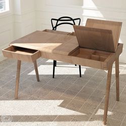 Metis est un bureau compact réalisé en bois massif de chêne, qui offre une véritable solution pour garder ses objets personnels. Ce bureau est disponible en chêne ou en bois de noyer.
