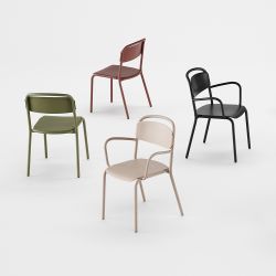 En sélectionnant la version extérieure , la chaise Skol est disponible avec une finition de peinture adaptée aux espaces extérieurs.