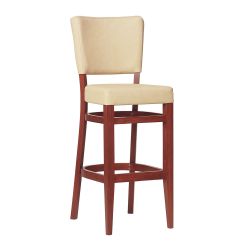 Tabouret en bois avec hauteur d'assise 76 cm et dossier rembourré.
