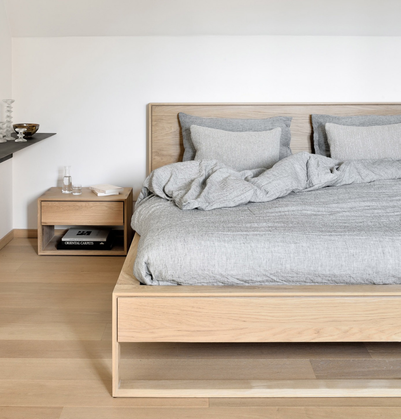 Concepita come uno spazio non solo per dormire ma anche in cui leggere, prendersi cura di sé o rilassarsi, la camera da letto è spesso arricchita da poltrone, sedute lounge o un piccolo tavolo. Letto, comodini e comò della camera in stile nordico sono tipicamente in legno, magari con dettagli in paglia di Vienna o complementi in vimini che aggiungono una nota rustica all'arredamento.