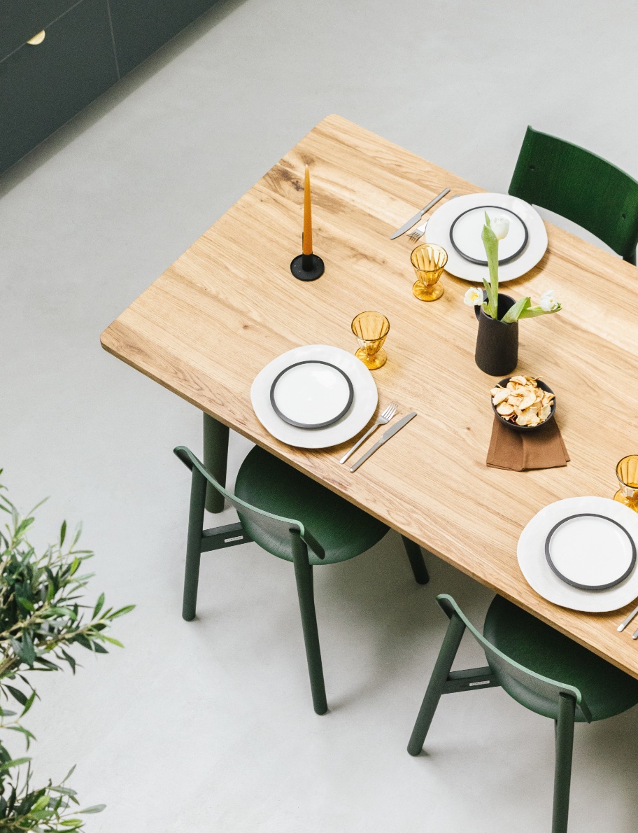 Un tavolo ampio in legno di rovere abbinato a sedute con gambe in metallo o legno e sedile imbottito. Una composizione di lampade a sospensione dal design leggero ed essenziale. Il legno è il materiale principe per arredare una sala da pranzo in stile scandinavo, da abbinare a materiali più freddi per scongiurare l'effetto baita, se il "total wood" non convince completamente.